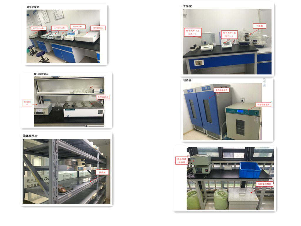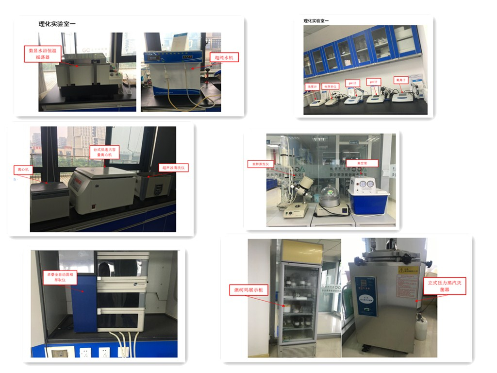 實驗室配備有氣相色譜儀、氣相色譜質譜聯用儀、液相色譜儀、液相色譜質譜連用儀、離子色譜儀、電感耦合等離子發射光譜儀、電感耦合等離子發射光譜質譜儀、火焰原子吸收分光光度計、石墨爐原子吸收分光光度計、原子熒光分光光度計、吹掃捕集水土一體機、全自動頂空進樣器 、全自動高效快速溶劑萃取儀、全自動高通量平行濃縮儀等多種類型的分析儀器設備和輔助設備,共計146臺(套)。
